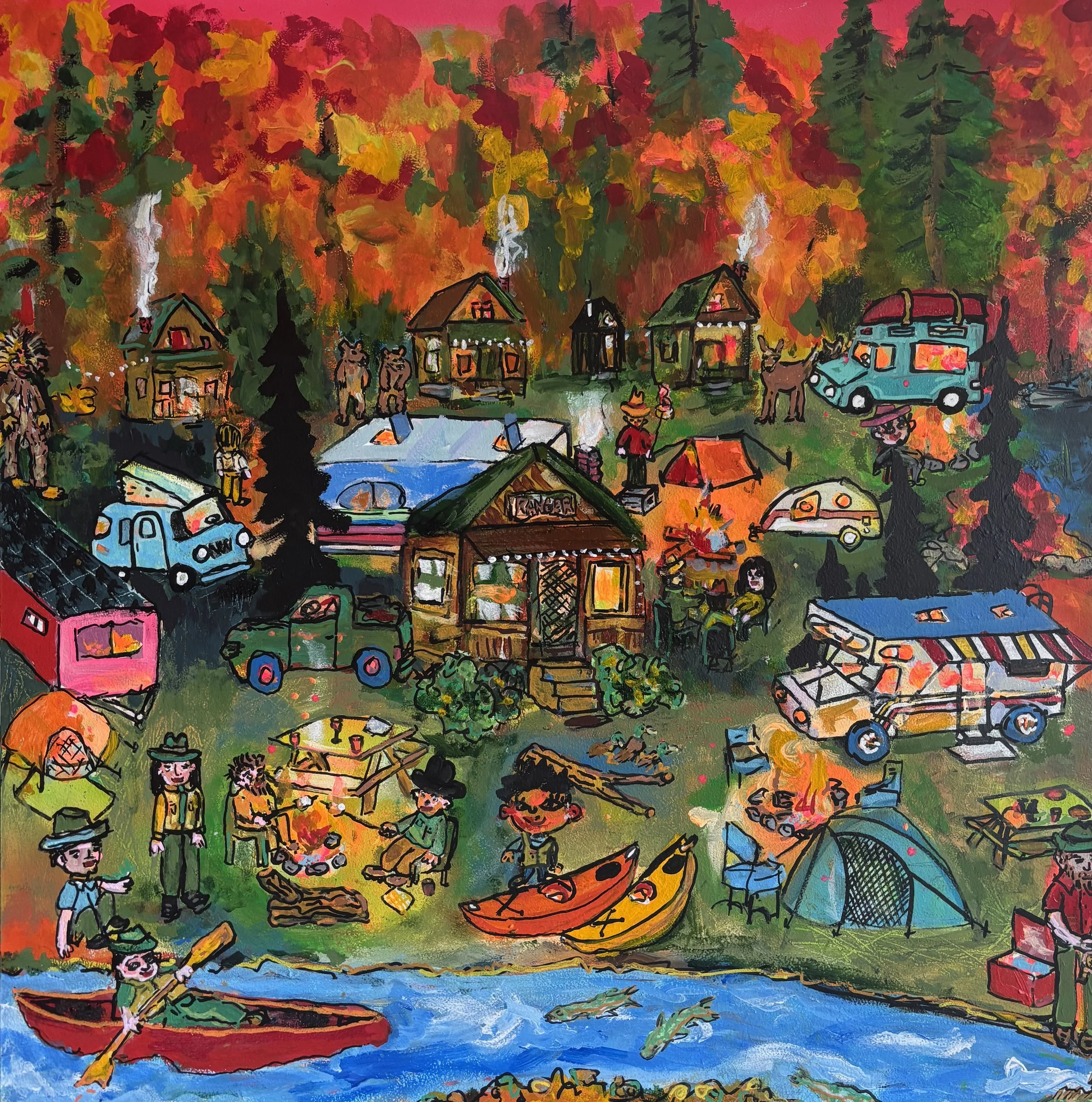 Artists, Educators and friends, Torrell Arnold and Kathleen Farrell are at it again …collaborating on thirteen paintings of such subjects as: The Wild West, A Dog Park, Wilderness Camp Ground, Skating Rink, Circus to a Bowling Alley and more. These works as well as their own creations will be part of this exhibition.